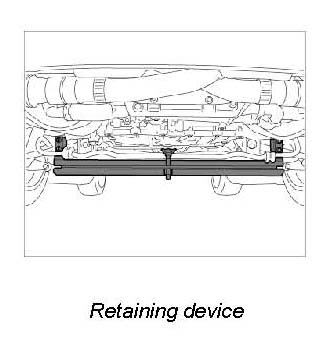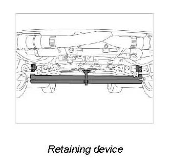 2. Place transmission jack under transmission and fasten fixing strap.