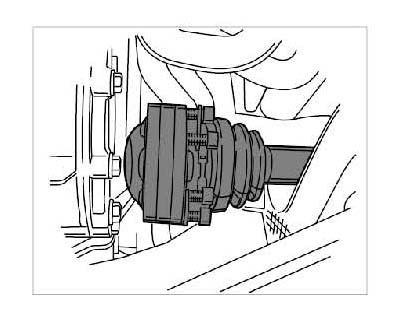 6. Remove drive shafts on transmission side. To do this, unscrew the six Allen screws joining each drive shaft and transmission flange. In order to stop the wheel being pulled round, it should be held still.