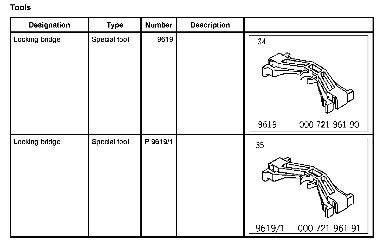 2. Locking bridge P 9619/1 must be fitted on the gearshift bracket.