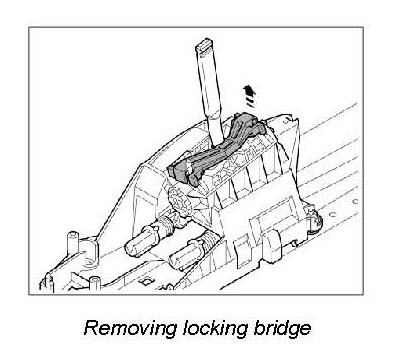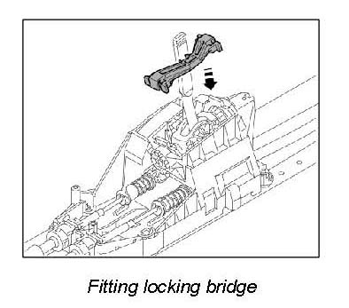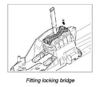 1. Locking bridge P 9619/1 must be fitted on the gearshift bracket.