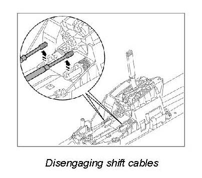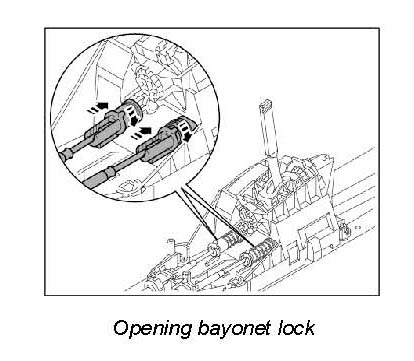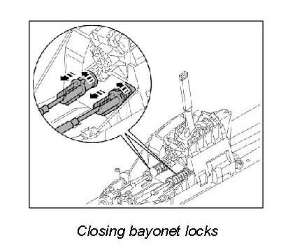 2. Open bayonet locks on the pre-selector and shifting connections.