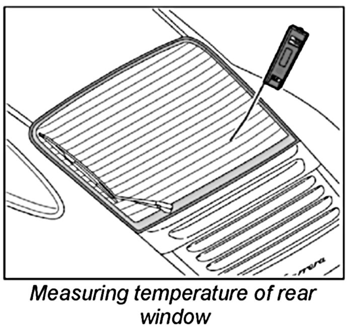 NOTE: The function of the heated rear window can be checked using a temperature probe with digital display.