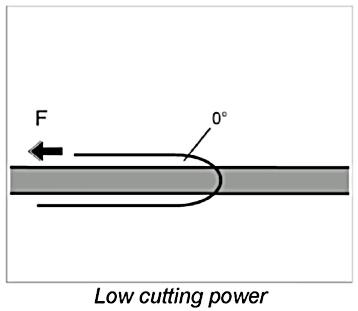 Unfavourable angle (strong traction required)