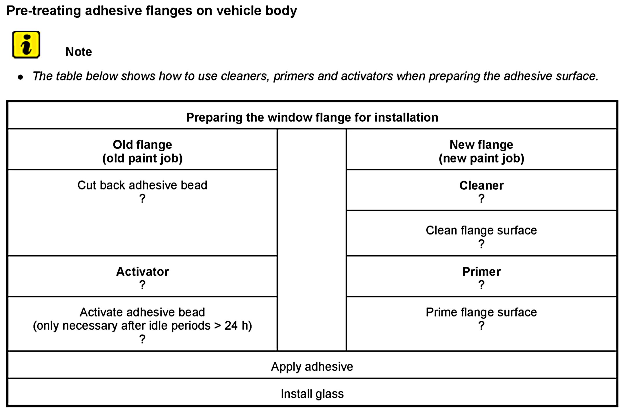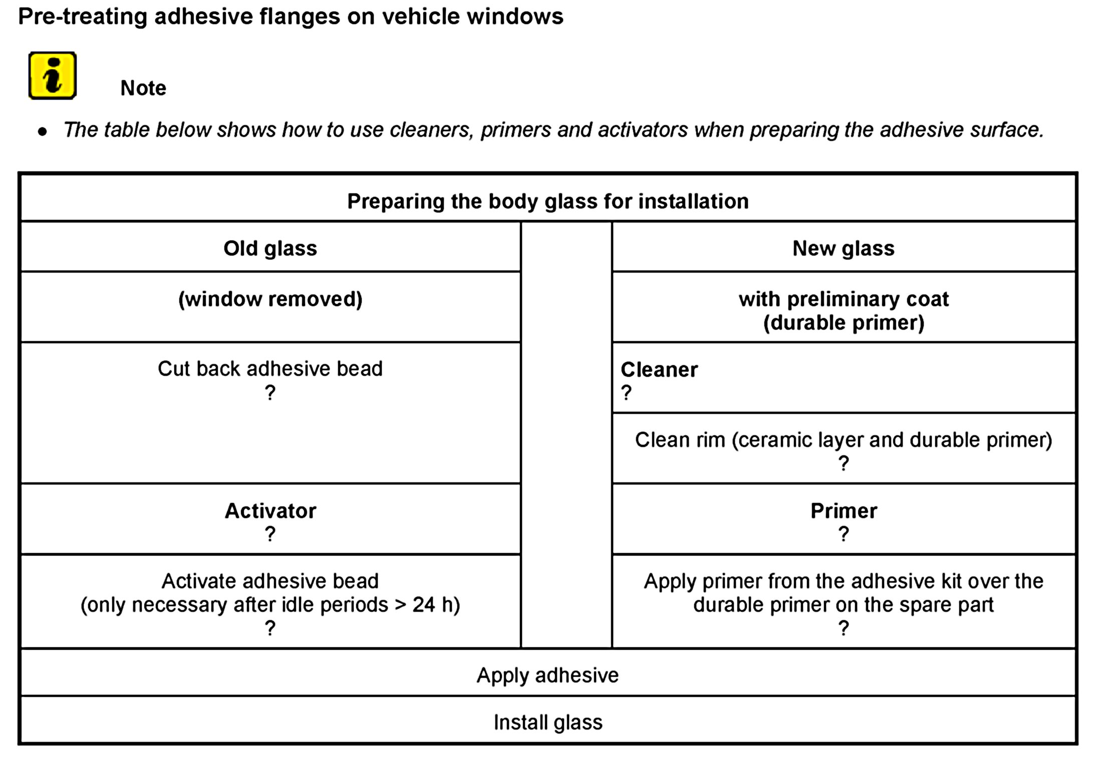 - The bonding material has an open time of 15 min, which means that the bonding material must be applied and the car window must be assembled within this period of time.