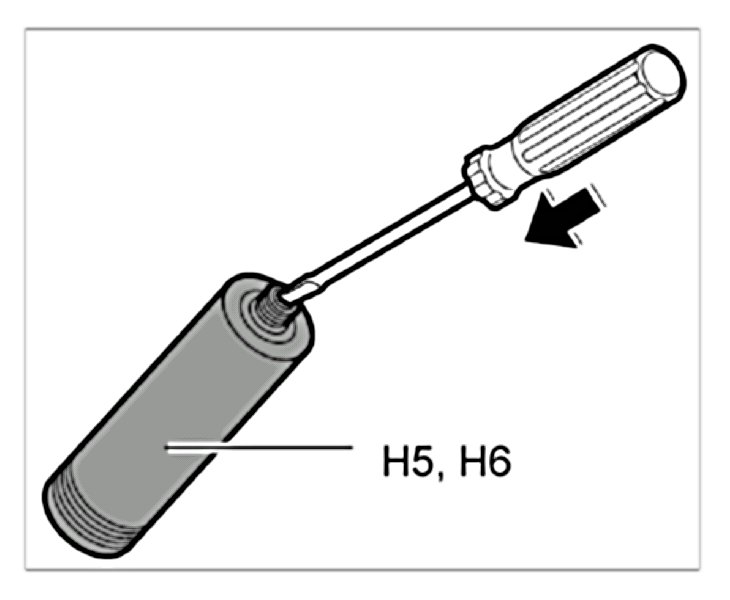 1.1. Pierce the membrane in the nozzle connection of components A and B (aluminium cartridge) -H5, H6- with a screwdriver and extend the opening.