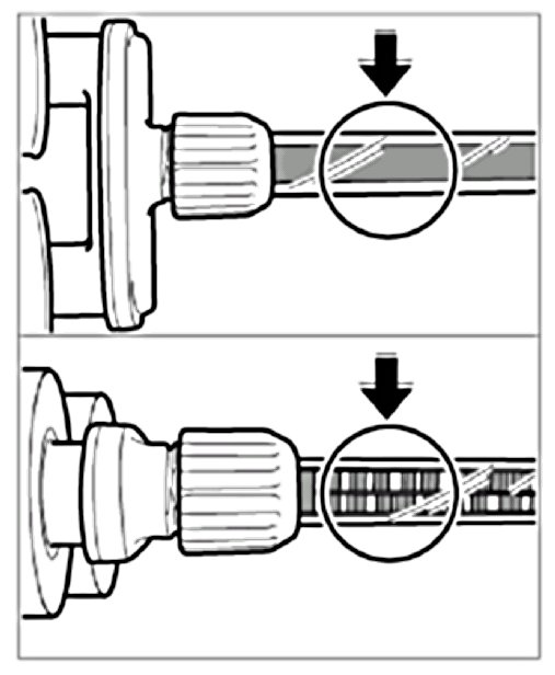 4.1. By activating the valve -arrow- allow the pressure piston to move out slowly until both components of the adhesive are visible at the mixing nozzle.