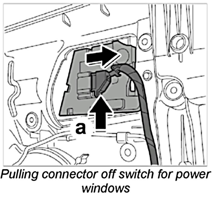2. Press in switch for electric power windows until the locking tab -arrow- clicks into place.