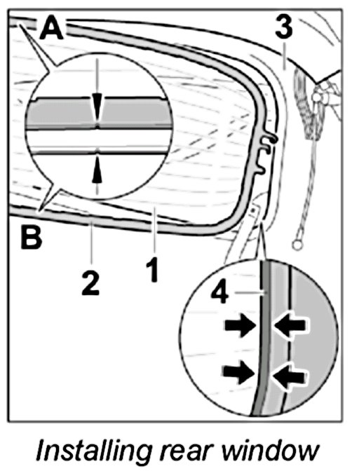 CAUTION: Risk of water leak if rear window is not fitted correctly.