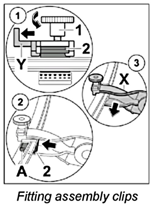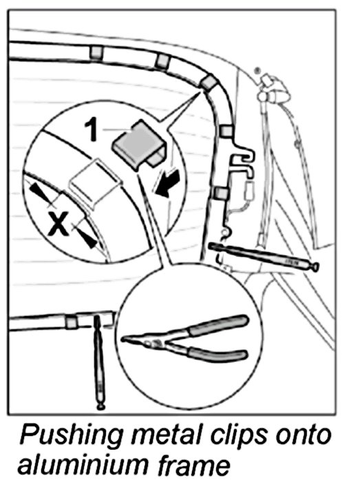 2. Push metal clips onto the aluminium frame and remove circlip pliers from the metal clip.