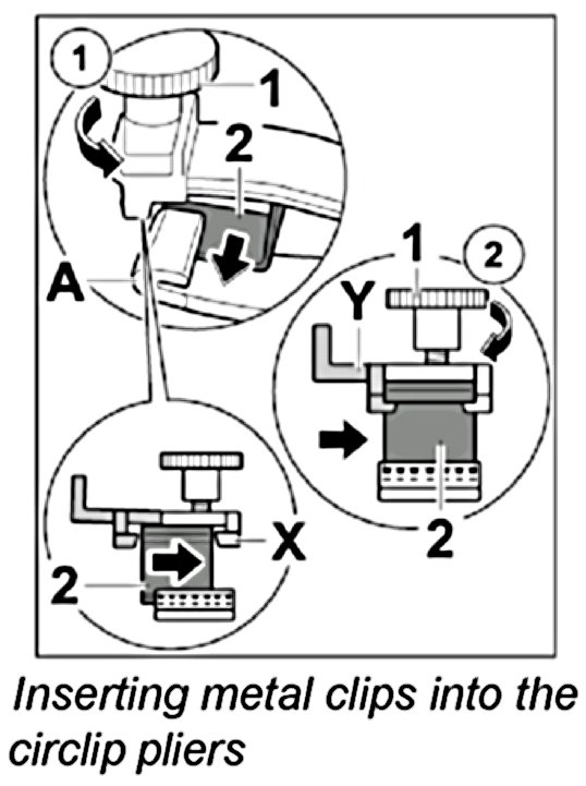 1. Insert metal clips into the circlip pliers.