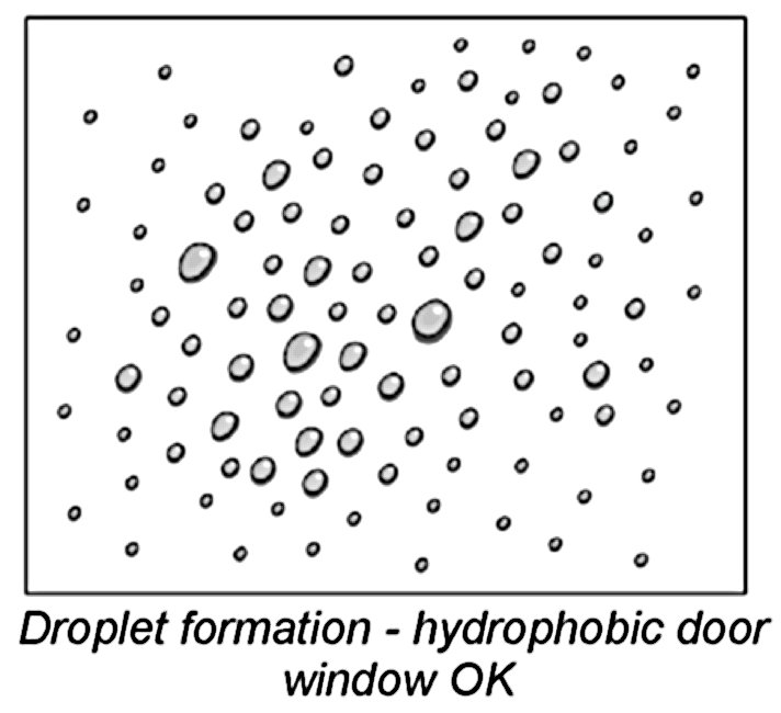 - The need for rework (applying new coating) can be examined by checking the drops of water on the windows.