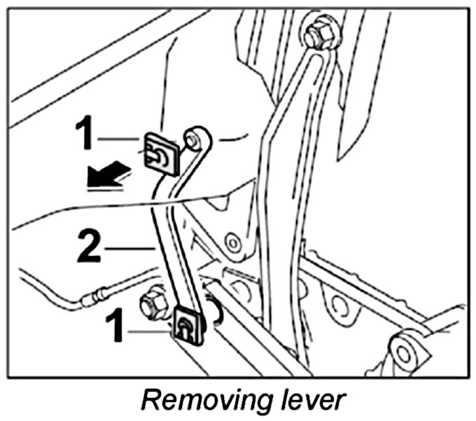 1. Press out the two retaining clips -1- from the lever -2- using assembly tool for Springfix System pin circlips NR.131 and remove lever.