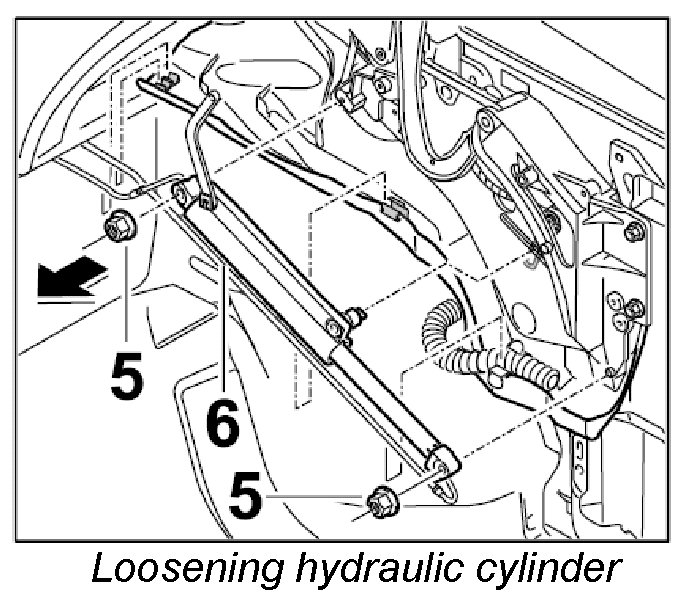 - Do not bend, trap or crush hydraulic lines when removing and installing.