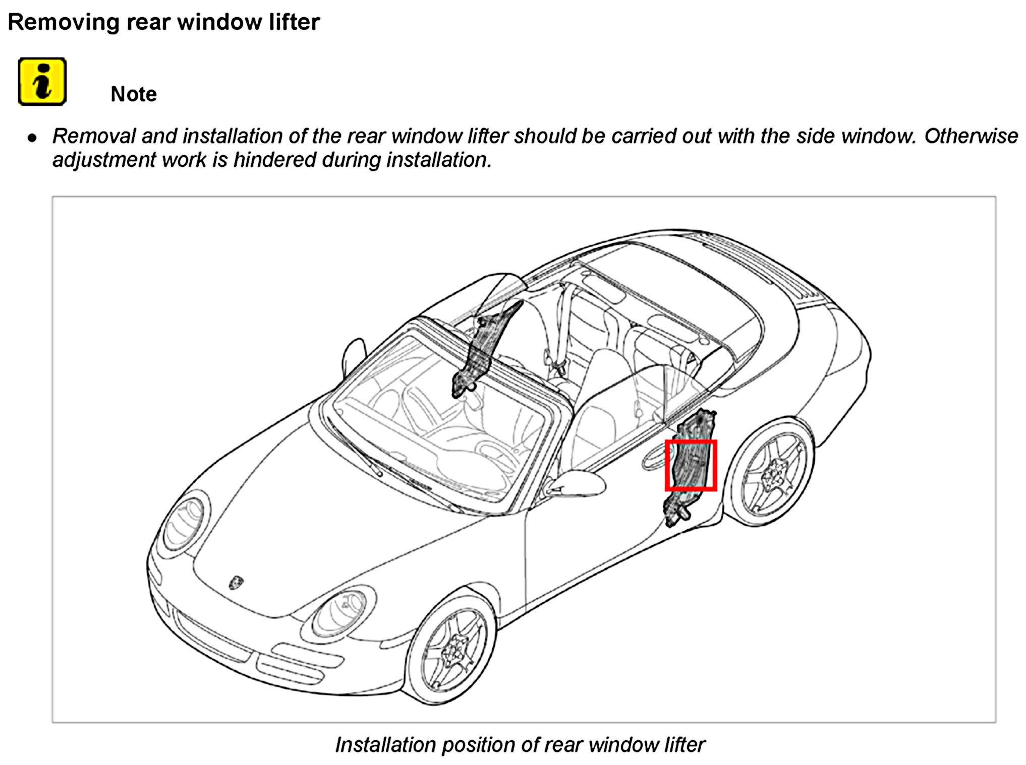 Additional instructions for adjusting or replacing the rear window lifter