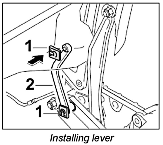 2. Fit lever -2- and secure with retaining clip -1-.