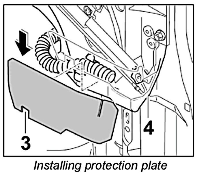 3. Insert protection plate -3- in chamber of water drip pan -4-.