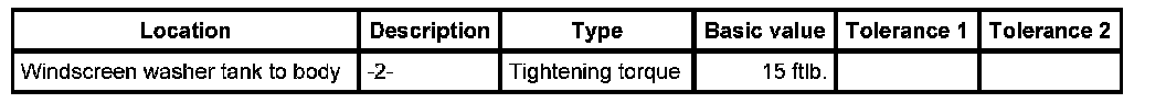 2. Engage the windscreen washer tank in the A-pillar and secure with the fastening screw -2-. Tightening torque: 15 ftlb.