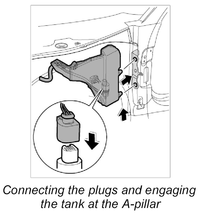 1. Retain the tank in the wheel housing and push in electrical plug connections until plugs are felt to engage.
