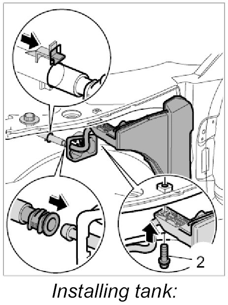 Installing tank for windscreen washer system