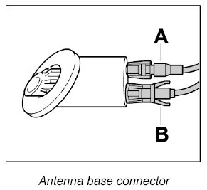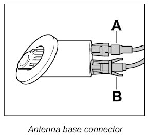 1. Push both connectors -A and B- onto the antenna base until they are felt to engage.