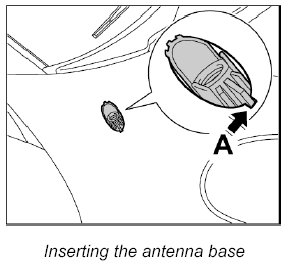 2. Insert antenna base in the cut-out from below. The bar of the antenna base must be inserted in the guide nut -A- while doing so.
