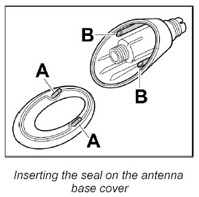3. Insert seal with the locating pins -A- in the holes -B- on the antenna base cover.