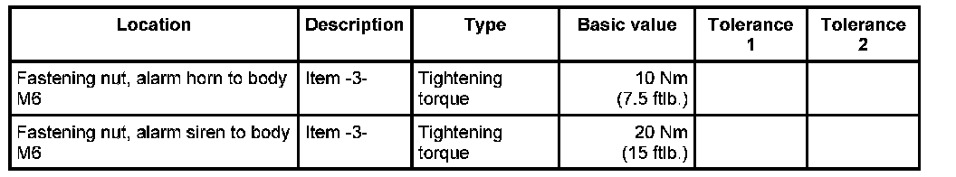 1. Position alarm siren -1-. Insert and counter fastening screw -4- and tighten fastening nut -3-. - Tightening torque: 20 Nm (15 ftlb.)