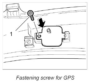 2. Unscrew the fastening screw -1- and pull out the GPS antenna out of the cowl panel cover.