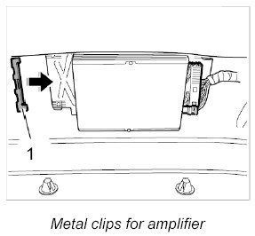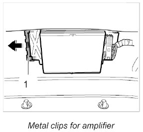 3. Push amplifier into its brackets and clip on the metal clips -1-