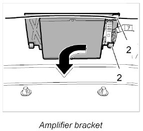 3. Pull amplifier out of its two retaining brackets -2-.