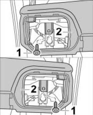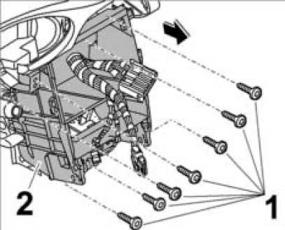 1. Unscrew fastening screws -1- on the instrument panel -2- at the front passenger side.