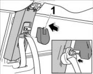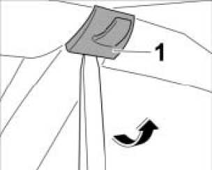 1. Lift up coat hook bracket -1- from below with a plastic spatula -arrow- and carefully pull up and off.