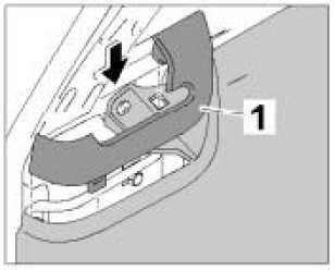 5. Position locking tabs of collar of opening for belt -1- on side trim panel and press them in.