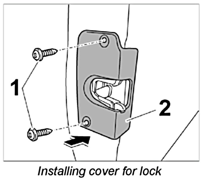 3. Unscrew fastening screws -1- and remove cover for lock -2-.