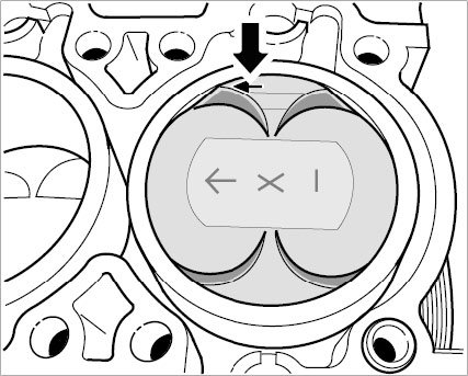 6.3. Pay attention to direction of assembly: arrow on piston crown always points to flywheel side.