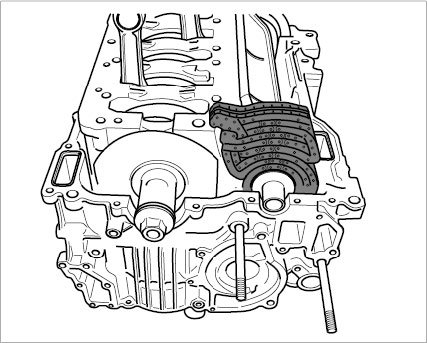 7. Carefully remove any remaining sealant on crankcase (particularly around the oil pan, intermediate-shaft bearing and crankshaft sealing rings).