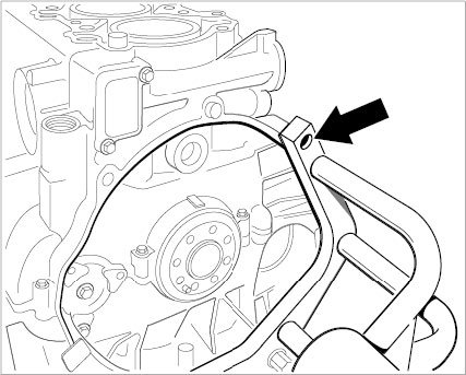 3. With the help of a second person, place crankcase half 4-6 in position on crankcase half 1-3. Knock gently on crankcase half 4-6 using a plastic hammer. Pull timing chain out through chain space using a bent welding wire.