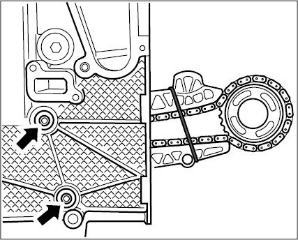 18. Fix timing chains with chain sprockets, for example with the old O-rings from the oil suction pumps.