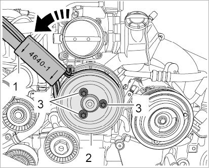5. Only position pulley/vibration balancer with fastening screw (to turn the crankshaft).