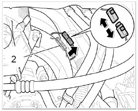 3. Unscrew the refrigerant line between the compressor and condenser at the connection points on the compressor and on the condenser and disconnect it.