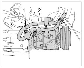 1.3. Drain the refrigerant oil from the air conditioning compressor.
