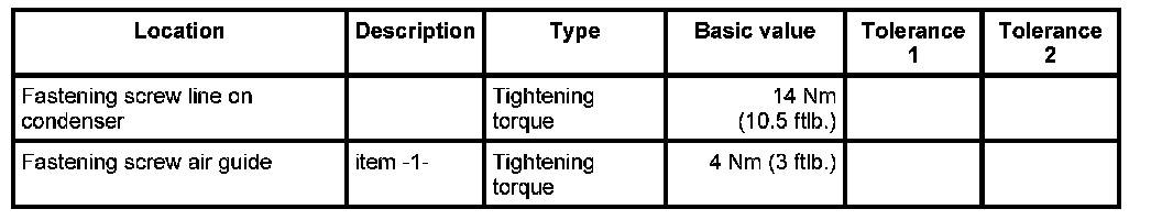 3. Engage air guide on condenser -A- and screw down using the two fastening screws -1-. - Tightening torque: 4 Nm (3 ftlb.)
