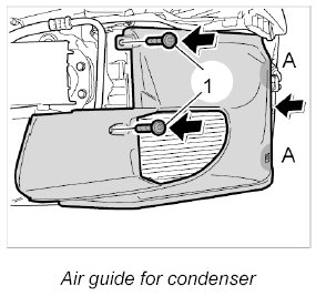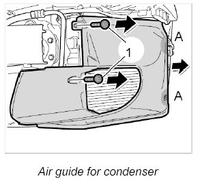 2. Pull the air guide forward and disengage it at the condenser -A-.
