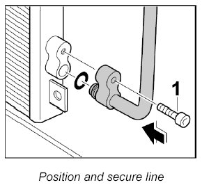 1. Carefully push the lines into the condensers and screw tight with the fastening screws. - Tightening torque: 14 Nm (10.5 ftlb.)