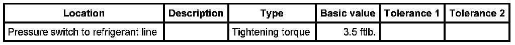 1. Screw pressure switch onto refrigerant line and tighten with an open-ended wrench. Counter with a second open-ended wrench. - Tightening torque: 3.5 ftlb.