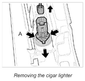2. Press together the locks -A- and push out the cigar lighter out of the centre console.
