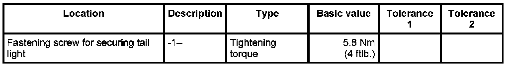 3. Secure tail light with the fastening screw -1-. - Tightening torque: 5.8 Nm (4 ftlb.)