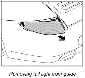 2. Lift the tail light at the bottom and remove from the guide.
