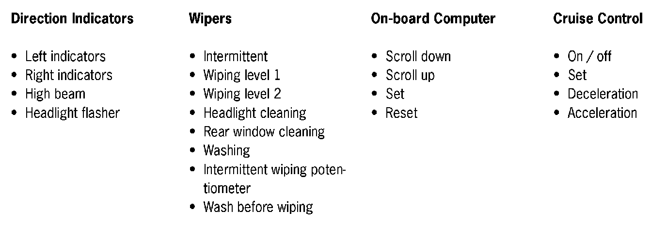 The combined steering column module reads in the button and switch signals generated by module levers and outputs this on the Comfort CAN.