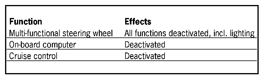 Diagnosis is carried out with the PIWIS Tester under menu option "Steering wheel electronics". Some functional features of the vehicle electrical system are restricted or disabled in production and transportation mode.